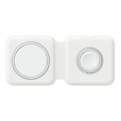 С двойным зарядным устройством MagSafe удобно заряжать совместимые модели iPhone и Apple Watch, беспроводной зарядный футляр для AirPods, а также другие устройства стандарта Qi. Просто положите их на зарядное устройство — и они начнут стабильно и эффективно заряжаться. Кроме того, зарядное устройство компактно складывается, поэтому его удобно брать с собой.